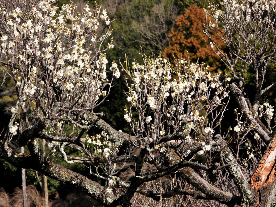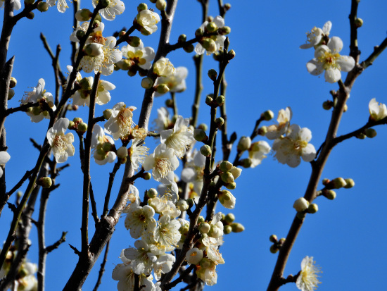 - 今年最初の薬師池公園の散歩です。白梅と紅梅は2~3分咲きが多くまだ咲いていない梅もあります。梅の品種の道知辺(ミチシルベ)が満開に近いです。